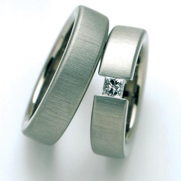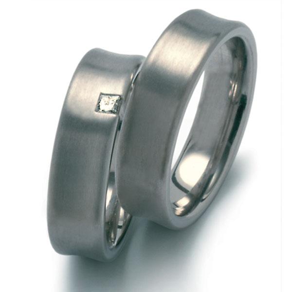 Marrying 950 Platin, 6,00 mm Breite, seidenmatt, 1 Diamant - Prinzess 0,06 ct. TW/IF,