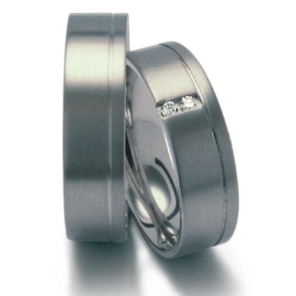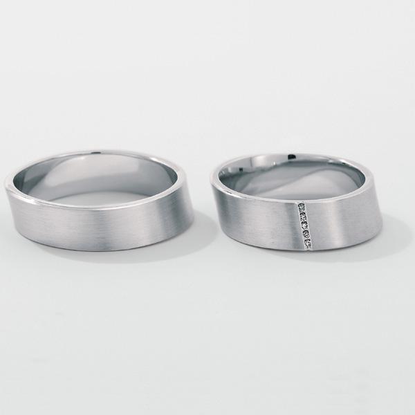 Marrying 950 Platin, 6,00 mm Breite, seidenmatt / Fuge poliert, 2 Brillanten 0,04 ct. TW/SI,