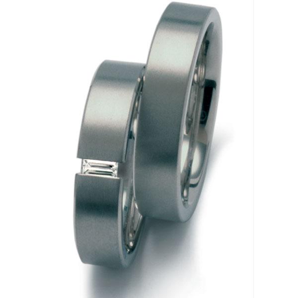Marrying 950 Platin, 5,00 mm Breite, seidenmatt, 1 Diamant - Baguette 0,09 ct. TW/VVS,