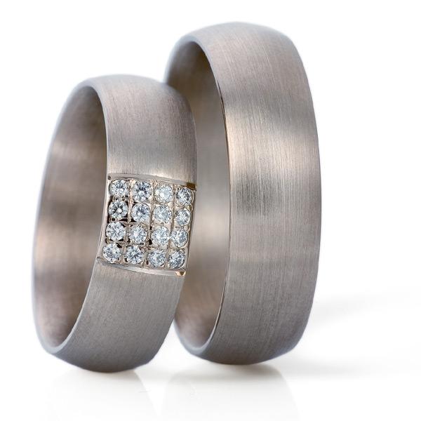 Marrying 585 Graugold, 6,50 mm Breite, seidenmatt, 16 Brillanten 0,16 ct. TW/SI,