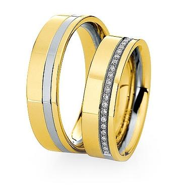 Trauringe 585 Weissgold /Gelbgold, 6,00 mm Breite, poliert, Mehrere Brillanten zusammen0,169 ct. W/SI,