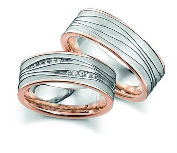 Trarigue 585 Weissgold / Rotgold, 7,50 mm Breite, seidenmatt / poliert, Mehrere Brillanten 0,06 ct. TW/SI,