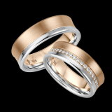 Herbert Giloy legte 1931 mit seiner Diamantschleiferei den Grundstein für das heute weltweit agierende Idar-Obersteiner Unternehmen. Giloy & Söhne steht für Tradition, begnadetes Handwerk, nachhaltige Werte und edle Materialien. Modell Catherine in 585er Weiß-Rosegold mit 18 Brillanten 0,20ct Lupenrein. Breite 7,0mm.