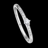 Herbert Giloy legte 1931 mit seiner Diamantschleiferei den Grundstein für das heute weltweit agierende Idar-Obersteiner Unternehmen. Giloy & Söhne steht für Tradition, begnadetes Handwerk, nachhaltige Werte und edle Materialien. Verlobungsring in Gelb-und Weißgold. 1 Brillant 0,10ct und 8 Brillanten 0,04ct Weiß-Lupenrein.