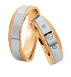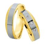 Manufactory Saint Maurice - Germany Pforzheim. Collection Preciousline. Wedding ring in 585 white polished / yellow gold matt. 3 Brillant together 0,09 ct. W/SI. Wide 7,00 mm.
