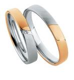 Manufactory Saint Maurice - Germany. LIGHT COLLECTION. The Pforzheim Jewelry Factory is not only beautiful but also perfect-looking wedding rings. 585 white gold matt / yellow gold polished. 1 Brillant 0,015 ct. W/SI. Width 3,50 mm.